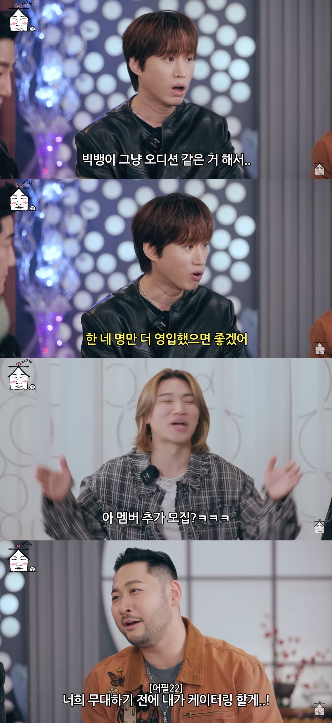 이에 투컷은 "생각해보니 경쟁지잖아. 빅뱅 센데"라고 너스레를 떨었고, 타블로는 "솔직히 빅뱅이 오디션 같은 거 해서 4명만 더 영입했으면 좋겠다"고 밝혀 웃음을 안겼다.