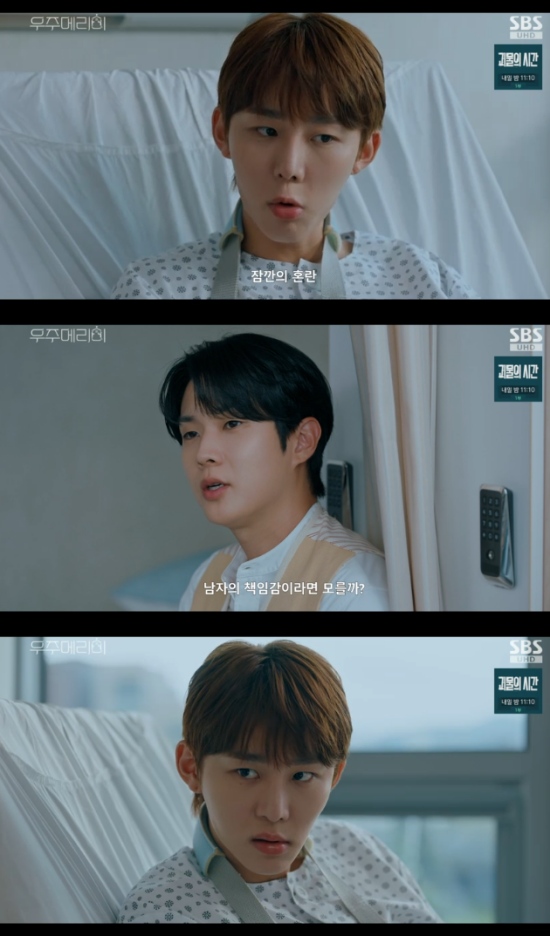 31일 방송된 SBS 금토드라마 '우주메리미' 7회에서는 유메리(정소민 분)의 전 약혼자 우주(서범준)의 병간호를 하는 김우주(최우식)의 모습이 그려졌다.