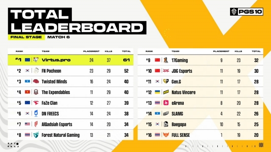 한국팀은 희비가 엇갈렸다. FN 포천은 52점으로 2위를 기록해 최상위권을 형성했고, DN 프릭스는 38점으로 6위를 기록해 최상위권을 향한 발판을 마련했다.