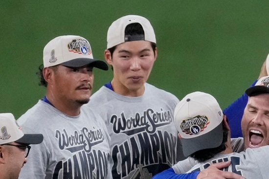 매체는 "이날 승리로 야마모토는 월드시리즈에서 3경기에 등판해 3승을 기록했다. 연장 18회까지 이어진 3차전에서도 자원해서 불펜에서 준비하며 철인다운 면모를 보여줬다"며 "경기 뒤 그라운드에서 열린 시상식이 끝난 뒤에는 곧장 샴페인 파티가 벌어지는 장소로 향했다. 2년 연속 우승의 주역인 만큼 팀 동료들로부터 샴페인 세례를 집중적으로 받았고, 절친한 김혜성도 일본어로 '야마모토, 스게(대단해)'라고 감탄의 목소리를 내질렀다"라고 보도했다.