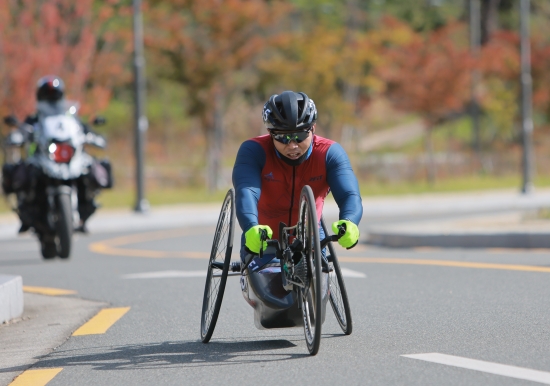 '철의 여인' 사이클 이도연(53·전북)은 여자 개인도로 31km(스포츠등급 H4)에서 1시간9분07초를 기록, 가장 먼저 결승선을 통과했다. 지난달 31일 열린 여자 개인도로독주 11km(스포츠등급 H4)에서 우승을 차지한 이도연은 오는 3일 혼성 도로 H 팀릴레이 13.5km 통합 경기에서 우승하면 이번 대회 3관왕을 달성하게 된다.