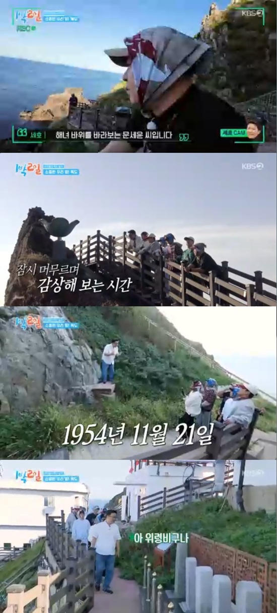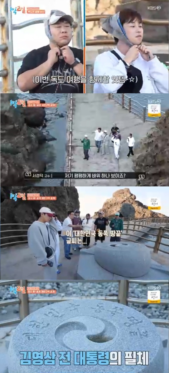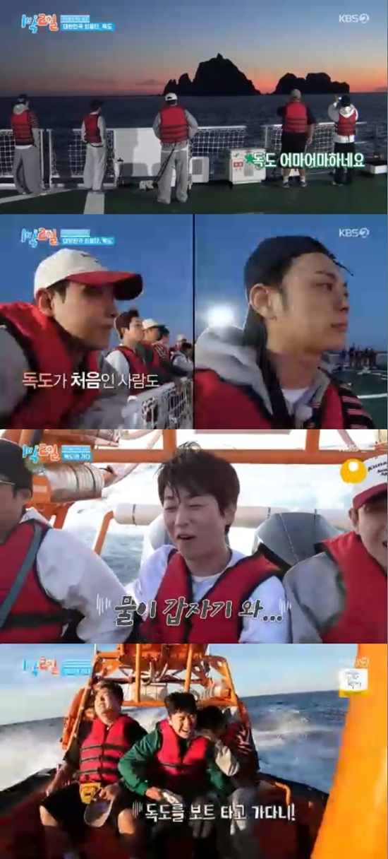 2일 방송된 KBS 2TV '1박 2일 시즌4'에서는 김종민, 문세윤, 조세호, 이준, 딘딘, 유선호가 독도에 발을 내딛는 모습이 전파를 탔다.