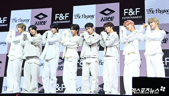 아홉(AHOF·스티븐, 서정우, 차웅기, 장슈아이보, 박한, 제이엘, 박주원, 즈언, 다이스케)의 두 번째 미니앨범 'The Passage(더 패시지)' 발매 기념 쇼케이스가 4일 오후 서울 광진구 예스24 라이브홀에서 열렸다. 진행은 코미디언 유재필이 맡았다.