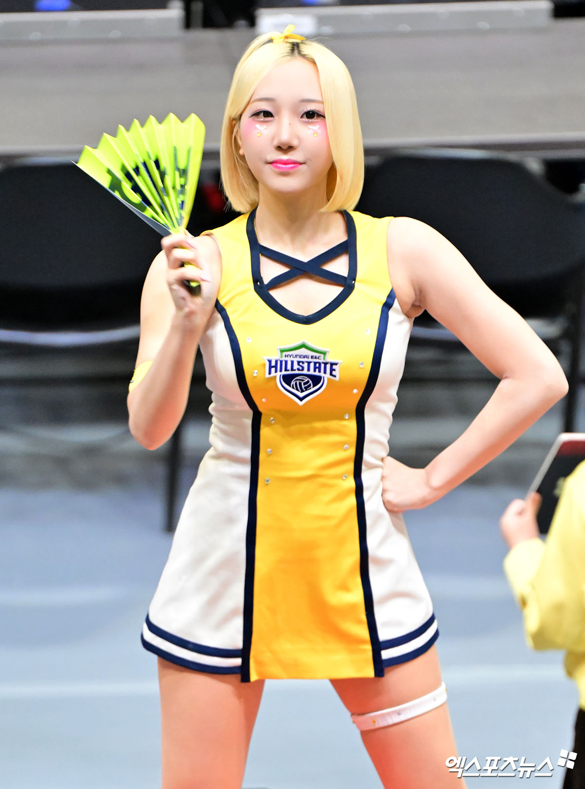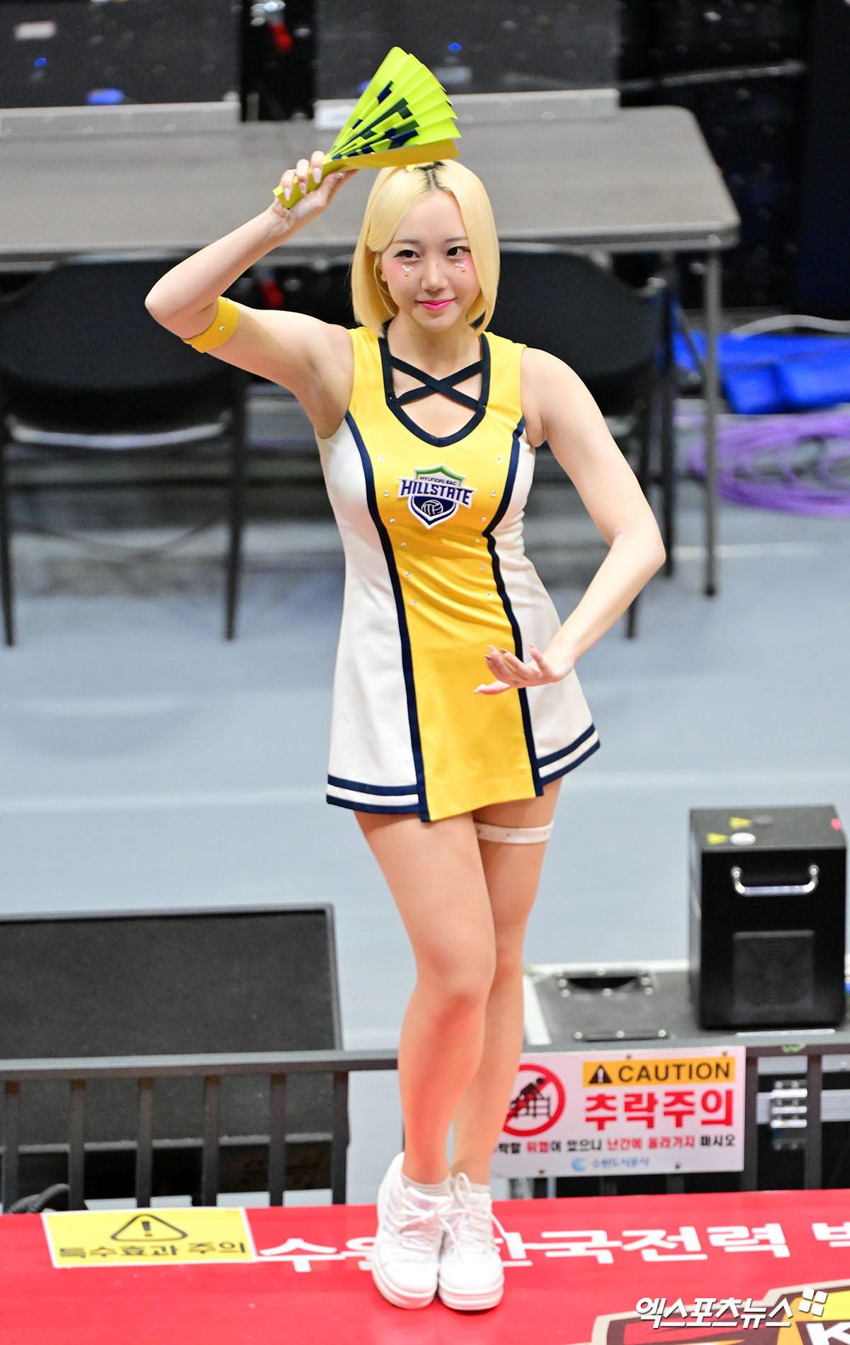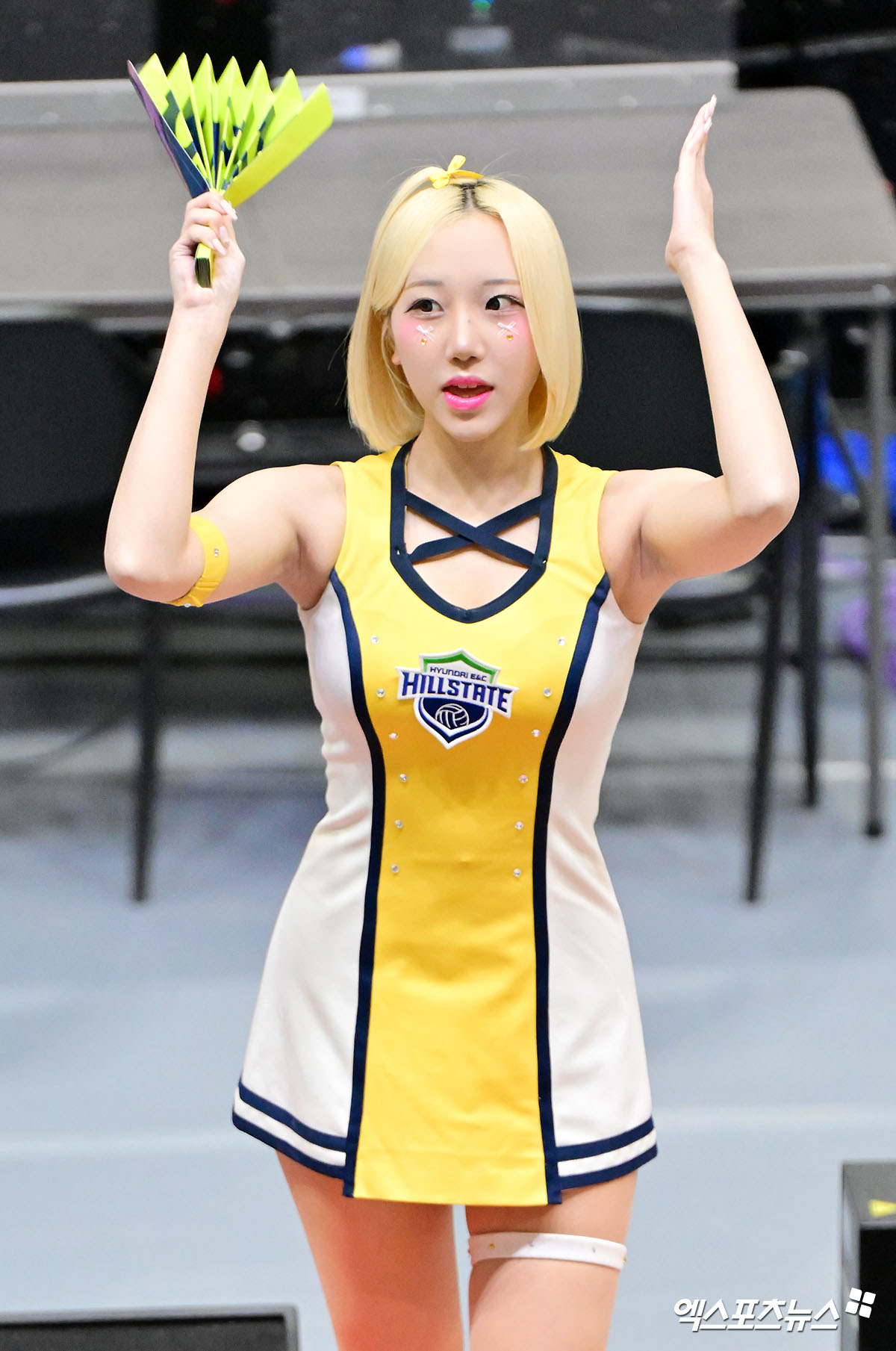 현대건설 박성은 치어리더가 열띤 응원을 선보이고 있다.