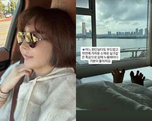 공개된 사진 속 황혜영은 따뜻한 이불 속에서 창밖 한강을 바라보며 여유로운 아침을 즐기고 있다. 고요한 풍경과 함께 전해진 문구는 그녀의 감성적인 일상을 엿보게 했다.