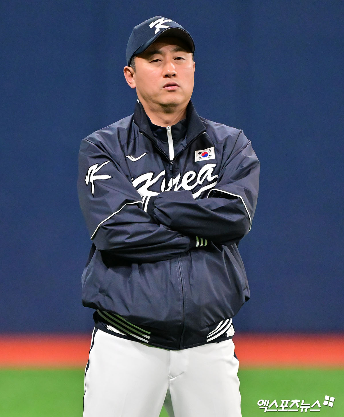 (엑스포츠뉴스 고척, 김한준 기자) 5일 오후 서울 구로구 고척스카이돔에서 진행된 야구 국가대표팀 훈련에 참석한 최원호 코치가 선수들의 훈련을 지켜보고 있다.
