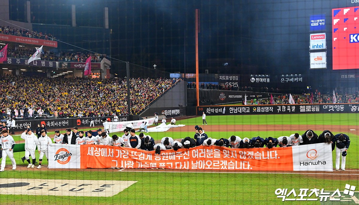 한화는 올 시즌 정규시즌 2위에 오르며 7년 만에 포스트시즌에 진출했다. 삼성 라이온즈와의 플레이오프에서는 시리즈 전적 3승2패로 2006년 이후 19년 만에 한국시리즈 무대에 서는 쾌거를 이뤘다. LG 트윈스와의 한국시리즈에서도 끝까지 포기하지 않는 투혼을 발휘했다.