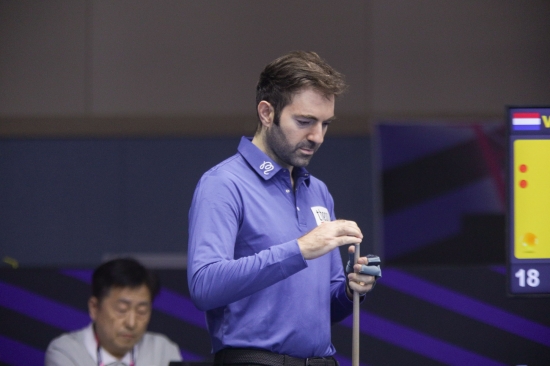 예선 경기에 나선 볼칸 체틴 선수의 경기 모습은 당구 팬들의 시선을 끌었다.