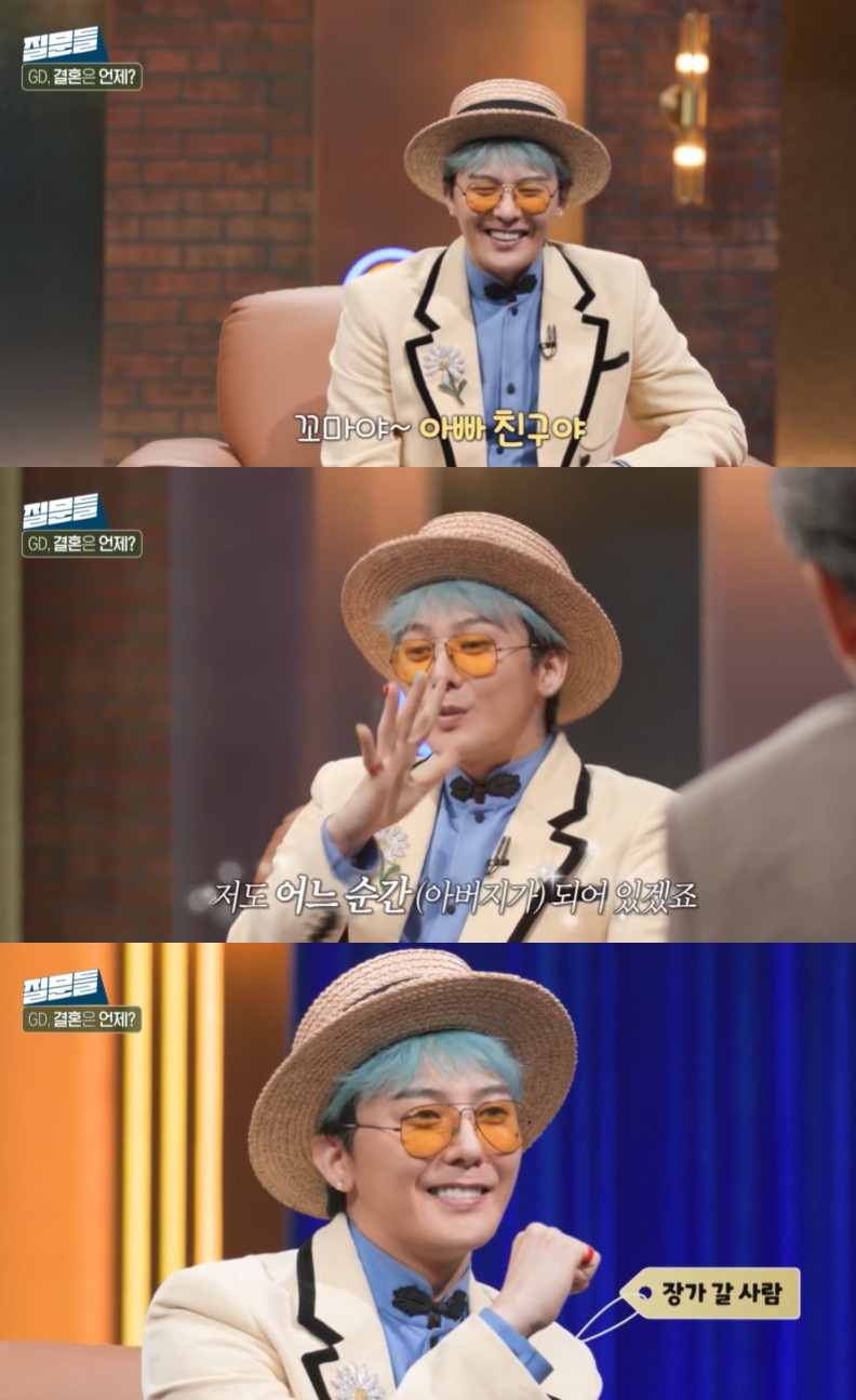이에 지드래곤은 "그게 정확하다. 전혀 (누굴지) 모른다. 근데 전 일단 (장가) 갈 사람이다. 그걸 알아주시면 누군가는 오지 않을까요"라며 너스레를 떨었다.