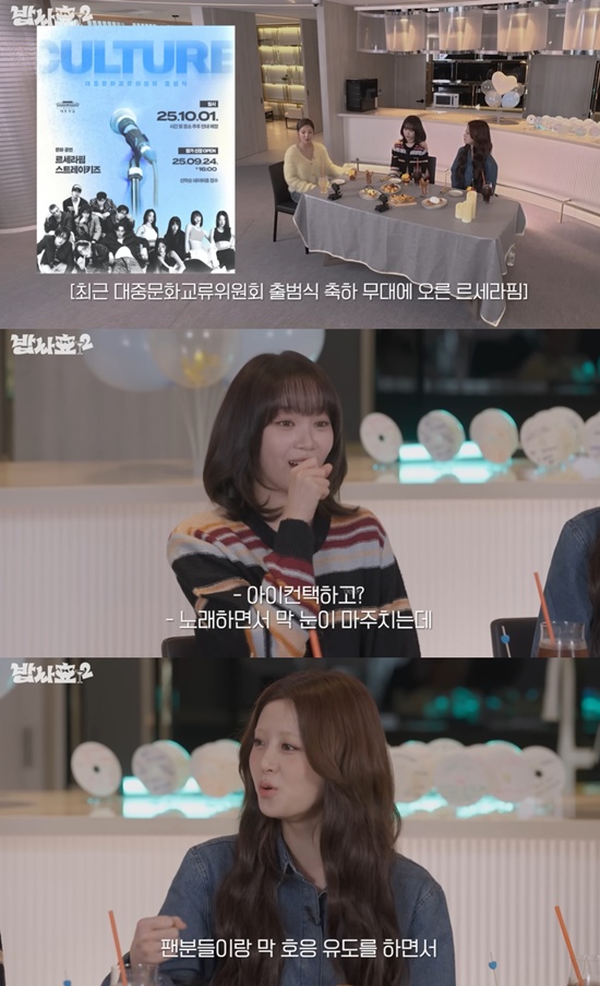 이날 게스트로는 르세라핌의 김채원과 허윤진이 출연한 가운데, 효연은 이들이 대중문화교류위원회 출범식 무대에 올랐던 것을 언급했다.