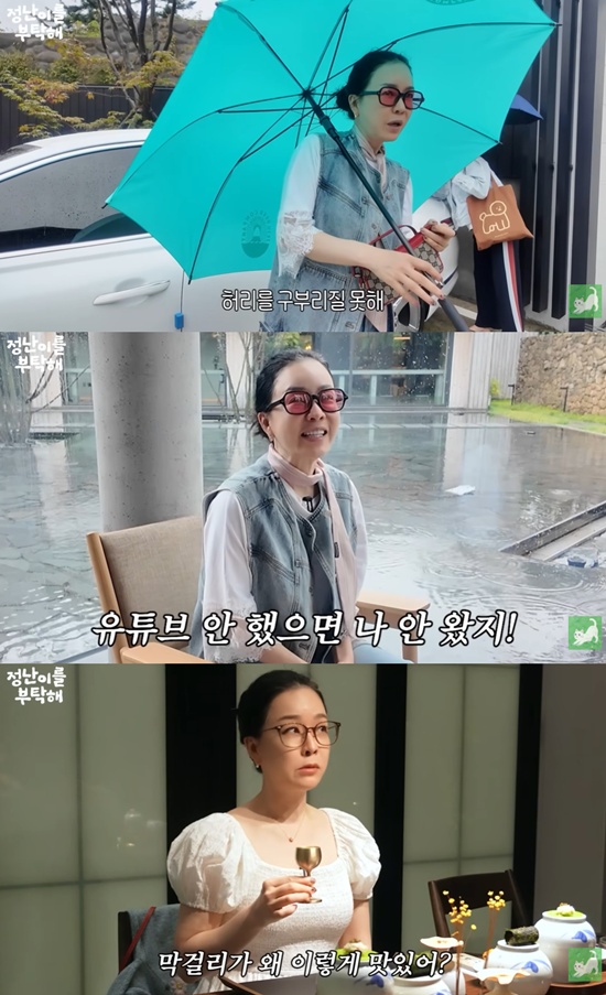 이날 영상에서 김정난은 "요통 때문에 너무 아프다. 허리를 구부리지를 못한다. 오기 전에 집에서 진통제 먹고 와서 그나마 지금 버티는거다"라며 온천으로 유명한 충주의 한 호텔을 찾았다.