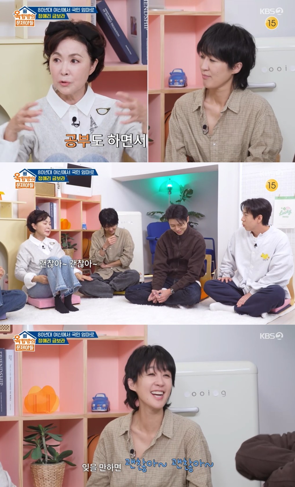 6일 방송된 KBS 2TV ‘옥탑방의 문제아들’에는 '국민 엄마'이자 '시청률 보증 수표' 배우 정애리와 금보라가 출연했다.