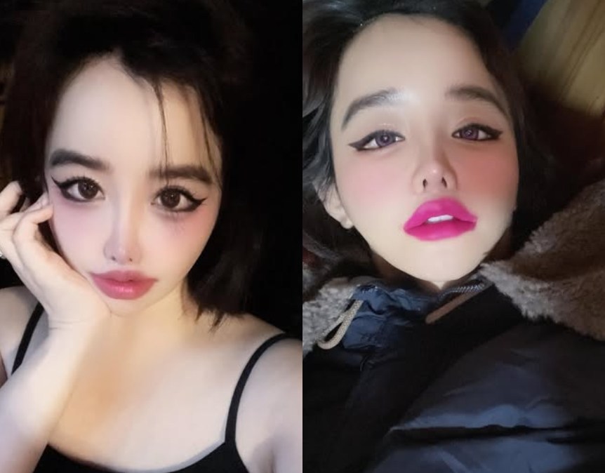 사진 속 박봄은 아이라이너와 속눈썹이 강조돼 있으며, 짙은 핫핑크색 립스틱으로 눈길을 끌었다. 과감한 메이크업과 뚜렷한 이목구비로 미모를 과시하고 있다.