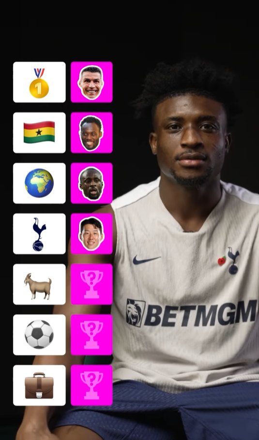 먼저 최고의 윙어를 묻는 질문에 쿠두스는 크리스티아누 호날두(알나스르)를 꼽았다. 조국 가나 역대 최고의 선수를 묻는 질문엔 과거 첼시, AC밀란 등에서 활약했던 미드필더 마이클 에시엔을 선택했다.