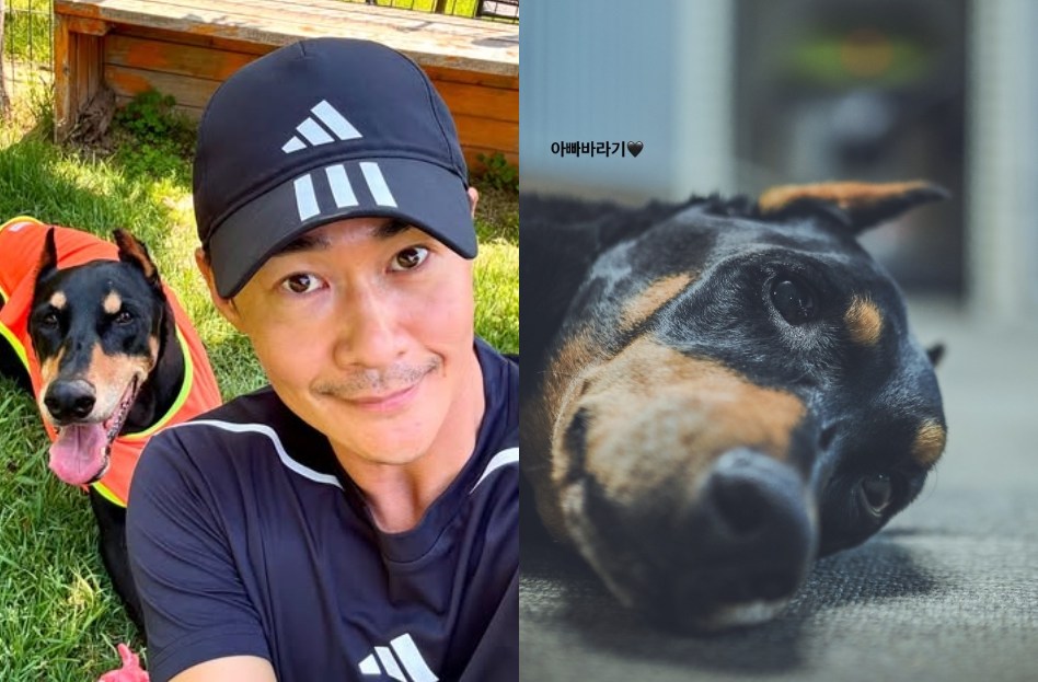 7일 배정남은 자신의 계정에 "아빠 바라기"라는 글과 함께 최근 세상을 떠난 반려견 벨의 사진을 공개했다.
