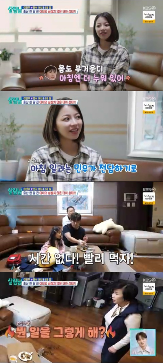 이민우 어머니는 손녀들 위해 아침밥상을 차려왔다. 이민우는 딸이 밥을 먹은 뒤 머리를 묶어주다가 밥상에 있던 그릇을 엎어 어머니의 분노를 샀다.