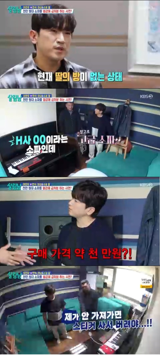 (엑스포츠뉴스 원민순 기자) 이민우가 딸의 방을 만들어주고자 고급소파를 헐값에 처분했다.