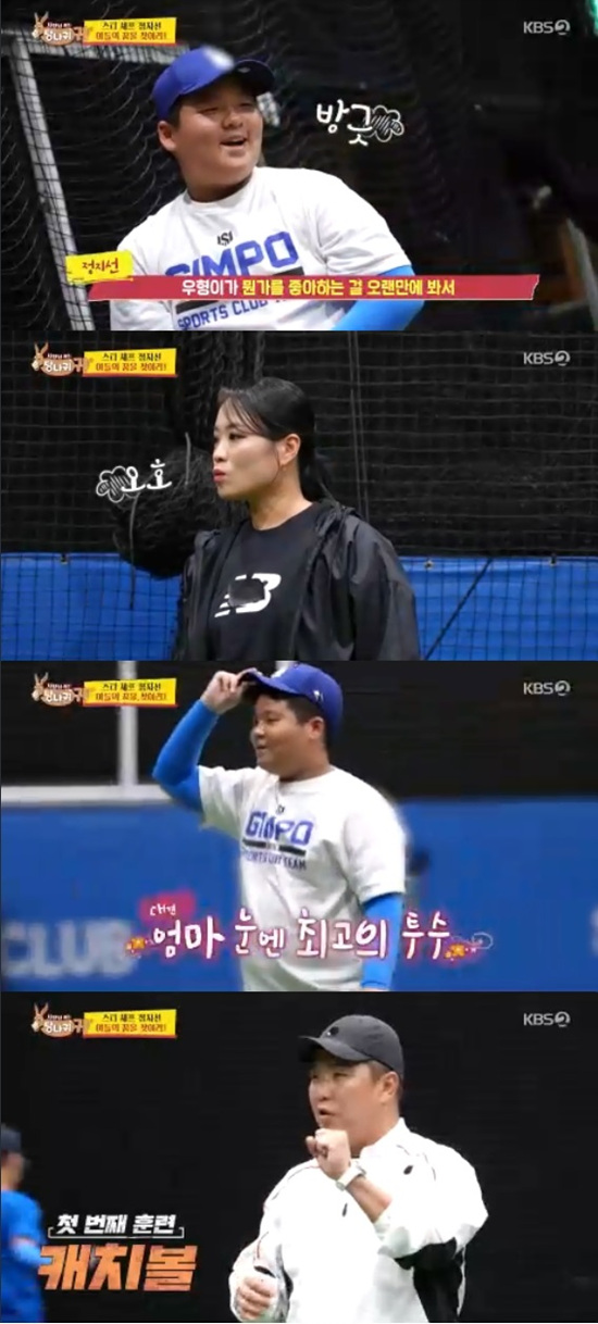 정지선은 우형이가 축구를 할 때는 공을 무서워해서 공이랑 안 맞는 줄 알았는데 야구는 아니었다며 신기해 했다.