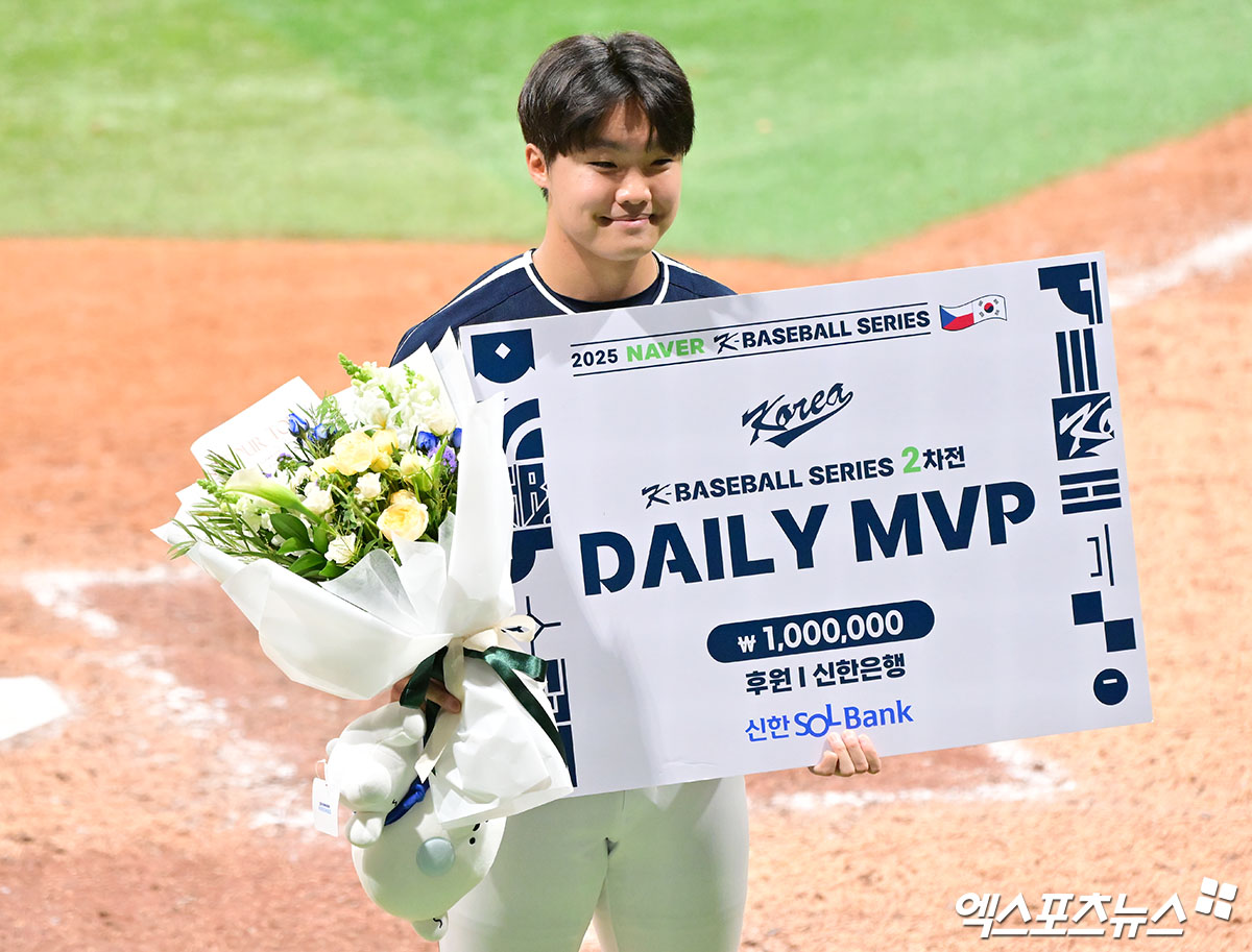 (엑스포츠뉴스 조은혜 기자) 태극마크를 단 '막내' 한화 이글스 정우주가 씩씩하게 공을 꽂는 모습에 '원조' 돌직구도 극찬을 아끼지 않았다.