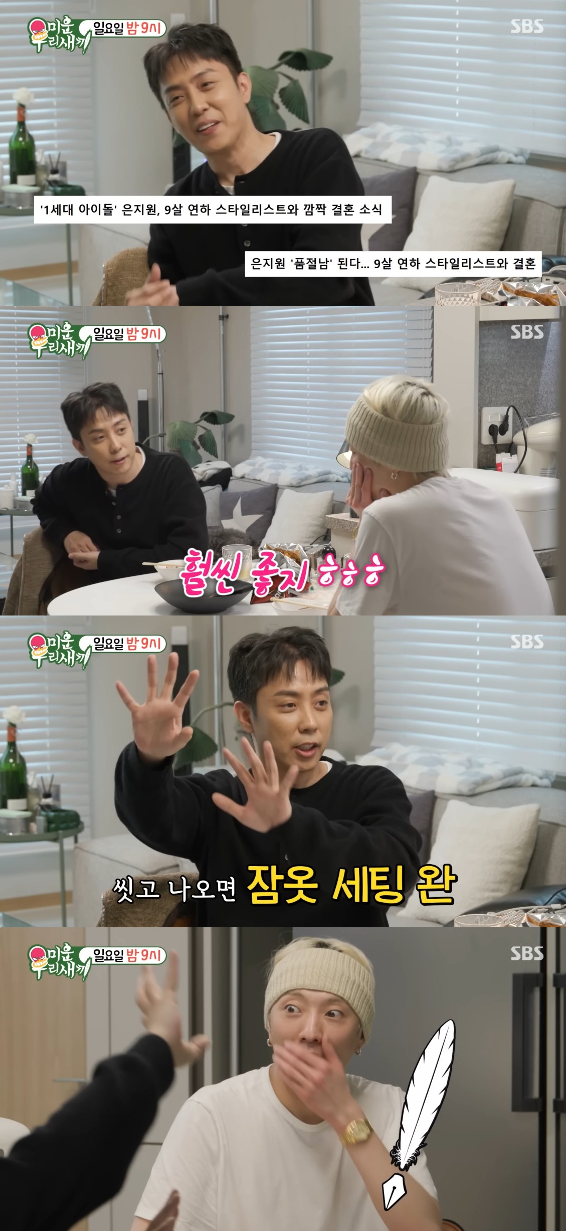 9일 방송된 SBS '미운 우리 새끼'(이하 '미우새') 말미에는 강승윤을 만난 유부남 은지원의 모습이 선공개됐다.
