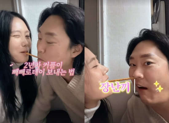 사진 속에는 두 사람이 양 끝에서 빼빼로를 나눠 물고 있는 모습이 담겼다. 처음 그윽한 눈빛으로 변혜진을 바라보던 16기 영철은 이내 장난기가 발동한 듯 콧구멍에 빼빼로를 끼워 웃음을 자아냈다.
