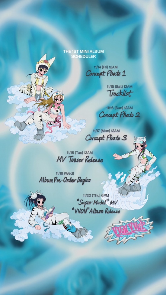 비비업(킴, 팬, 수연, 지윤)은 13일 공식 채널을 통해 미니 1집 'VVON(본)'의 스케줄러를 게재했다.