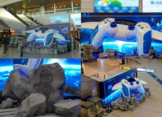 PlayStation은 타이틀의 주인공 캡틴 ‘ASTRO’가 DualSense 무선 컨트롤러 형태의 우주선 ‘듀얼 스피더’를 타고 서울역에 불시착하는 장면을 3D 조형물로 구현했다.