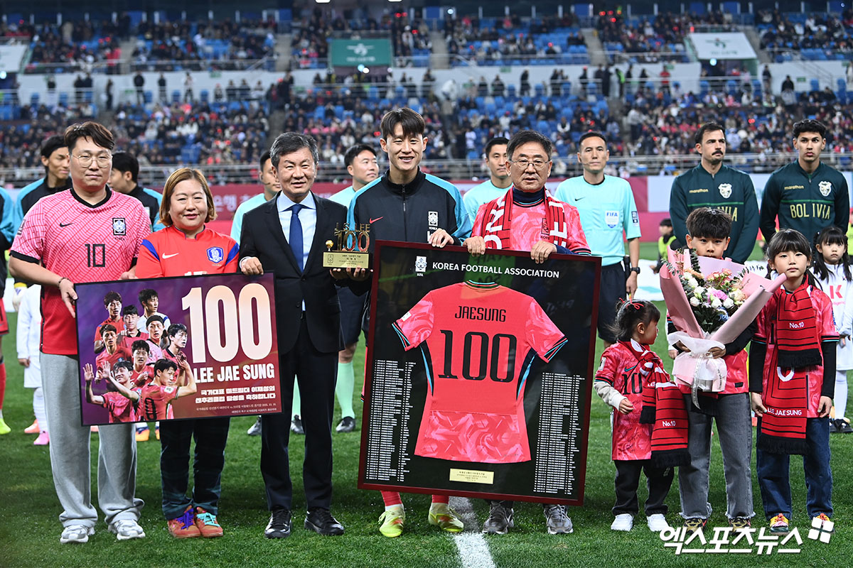 그로부터 10년이 지난 2025년 11월14일, 이재성이 처음으로 태극마크를 단 기억이 있는 대전월드컵경기장에서 이재성의 A매치 100경기 출전 기념식이 열렸다.