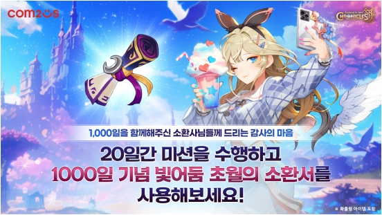 최근 컴투스(대표 남재관)는 자사 소환형 RPG '서머너즈 워: 크로니클'(이하 크로니클)의 글로벌 론칭 1,000일을 기념해 다양한 이벤트를 진행한다고 밝혔다.