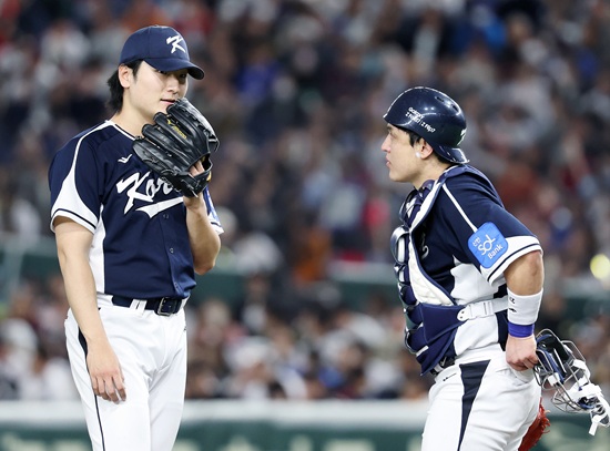 한국 야구대표팀은 15일 일본 도쿄돔에서 '2025 네이버 K-베이스볼 시리즈(NAVER K-BASEBALL SERIES)' 일본과의 평가전을 치르고 있다. 한국은 스코어 3-3으로 맞선 5회말 무려 6실점을 떠안으며 경기 분위기가 완전히 일본 쪽으로 넘겨줬다. 볼넷이 화근이었다.