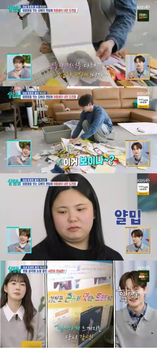 박서진은 "저걸 버린다는 건 미안하기도 하고 저걸 버리면 팬을 버리는 것 같아서"라고 팬레터를 하나하나 모으는 이유를 전했다.