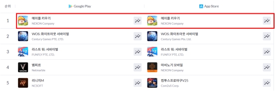 최근 넥슨은 11월 6일 글로벌 정식 출시한 '메이플 키우기'가 구글 플레이스토어와 애플 앱스토어에서 매출 1위를 기록했다고 밝혔다.