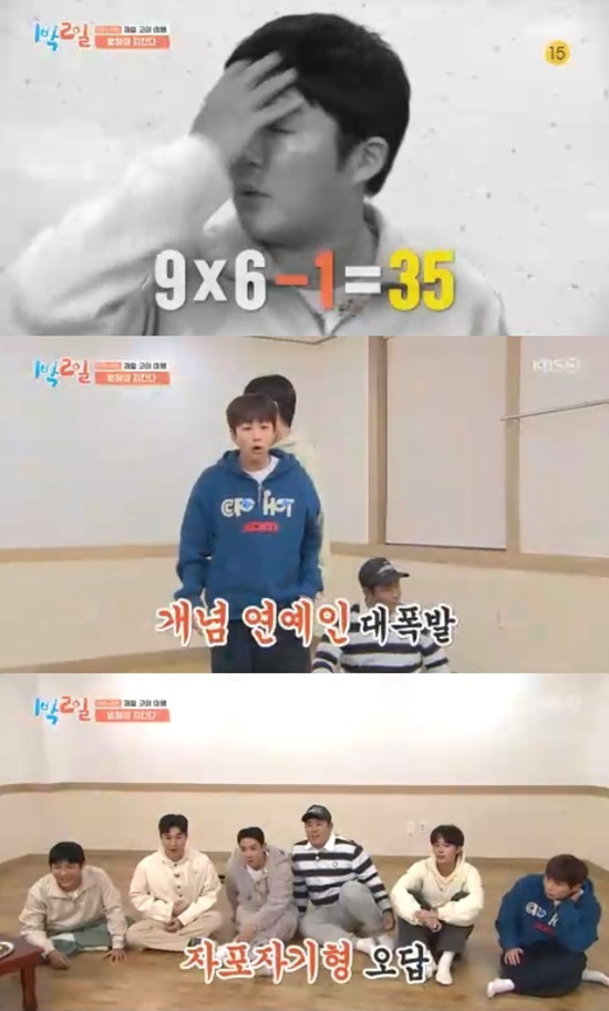 멤버들은 김종민이 쉬운 문제를 놓치자 망연자실하며 뒤로 누워버렸다.