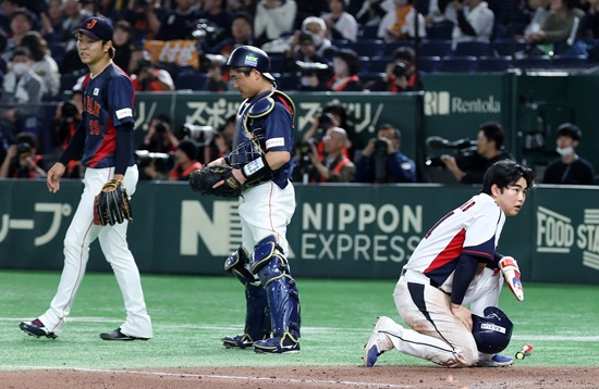 한국은 1사 2, 3루 위기에서 사사키를 2루수 직선타로 유도해 한숨을 돌렸다. 이어 이시가미를 헛스윙 삼진으로 잡고 실점 없이 위기에서 탈출했다.
