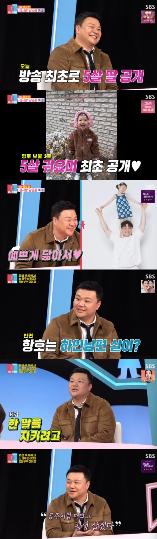 이에 대해 태항호는 "그 때는 딸이 1살이라 자아가 없으니까 허락을 받지 않고 함부로 딸에 대해 말하는 것이 좀 걸렸다. 그런데 이제는 5살이라 딸에게 허락을 받았다"면서 사진을 공개했다.