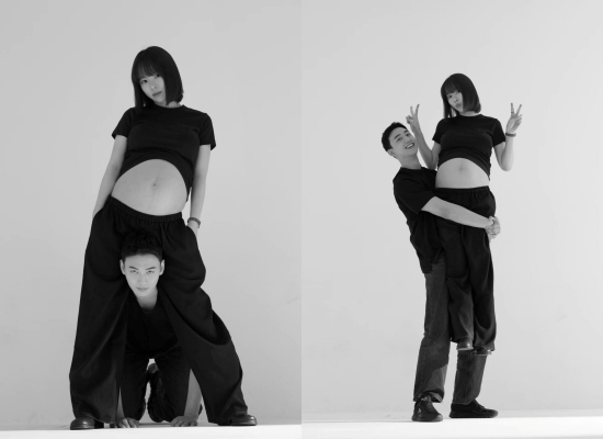 공개한 사진에는 만삭 배를 드러낸 하준맘과 아내의 다리 아래 무릎을 꿇은 하준파파의 모습이 담겨 있다. 또 다른 사진에서 하준파파는 아내의 배에 얼굴을 맞대는가 하면 아내를 번쩍 들며 미소를 보였다.