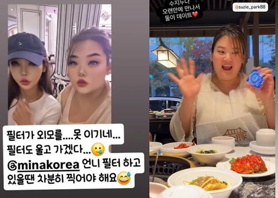 미나도 "수지누나 오랜만에 만나서 둘이 데이트"라는 글과 함께 식사 현장을 공개, 두 사람이 만났다는 사실을 알렸다. 이때 박수지는 포즈를 취하는 등 화기애애한 분위기를 드러냈다.