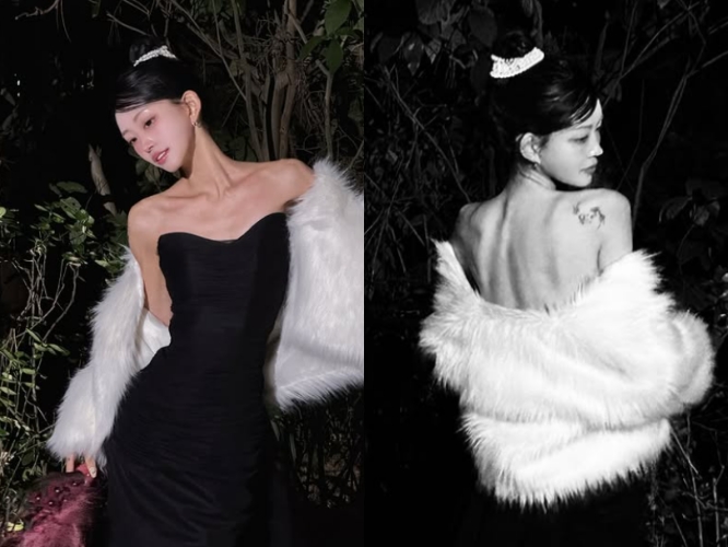 흰색 털 재킷으로 포인트를 준 최준희는 뒤태를 담은 사진에서 재킷을 살짝 내려 등에 위치한 타투를 공개하기도 했다.