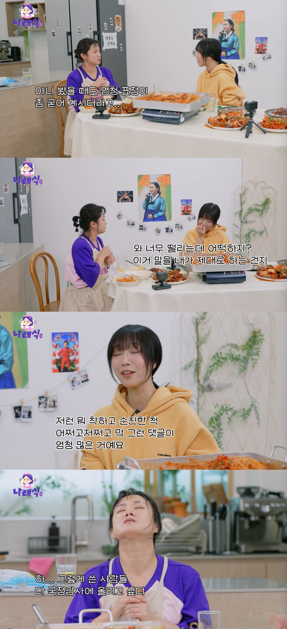 박나래는 "그건 아니다. 대중의 사랑을 먹고 돈도 벌고 명예도 생겼지만, 그런 글을 쓴 사람의 사랑을 먹고 성장한 건 아니라고 생각한다"라고 이야기했다.
