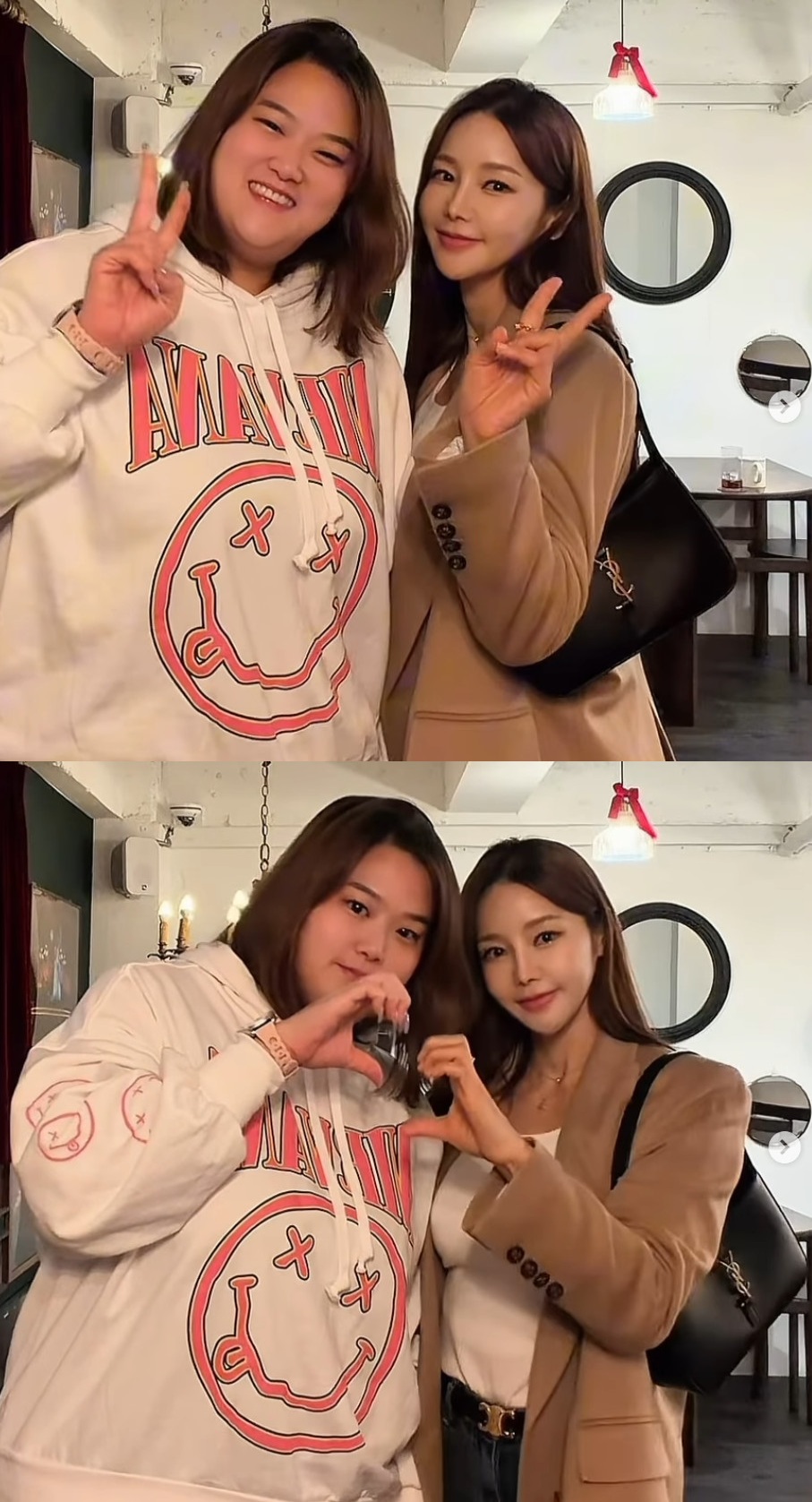 또한 그는 시누이 수지와 사이 좋은 모습을 인증했다. 이들은 꼭 붙어 포즈를 취한 채 "저희 사이 좋아요. 안 싸웠어요"라고 이야기해 눈길을 끈다.