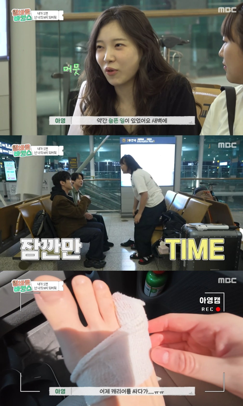 출발을 앞둔 김아영은 "제가 새벽에 슬픈 일이 있었다"며 "응급실을 다녀왔다"고 고백해 모두를 놀라게 했다.
