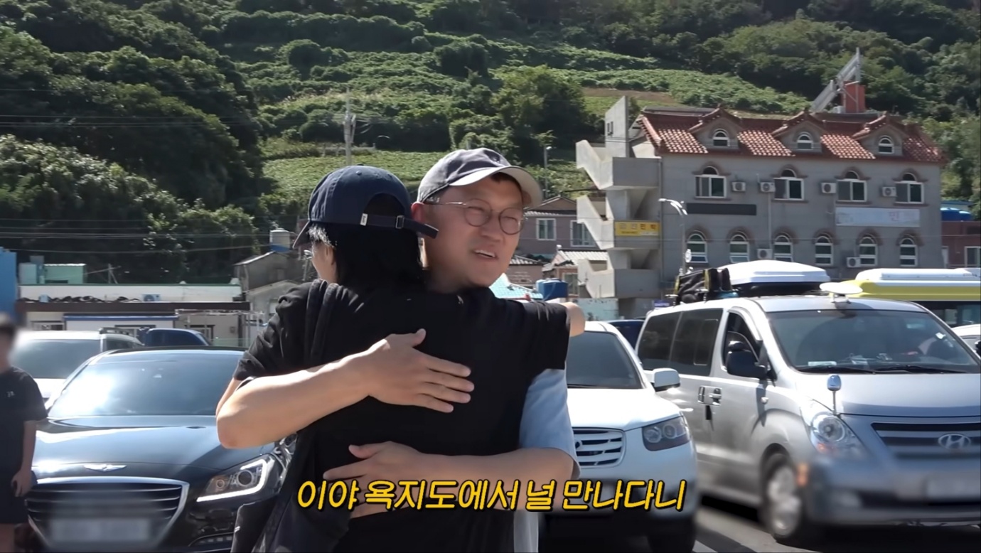 영상 속 욕지도를 방문한 홍진경은 "드디어 만났다, 드디어"라며 코미디언 출신 배우 고명환과 반갑게 포옹했다.