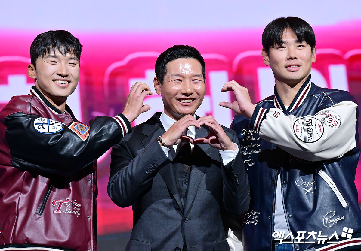 지난 3월 20일 오후 서울 송파구 롯데호텔 월드에서 열린 ‘2025 신한은행 SOL KBO’ 미디어데이, LG 박해민, 염경엽 감독, 홍창기가 포즈를 취하고 있다. 엑스포츠뉴스 DB