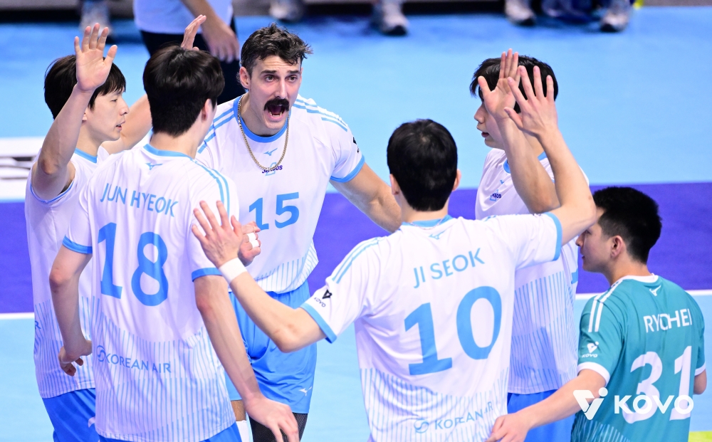 △대한항공: 아웃사이드 히터 정지석~미들 블로커 최준혁~세터 한선수~아웃사이드 히터 정한용~미들 블로커 김민재~아포짓 스파이커 러셀, 리베로 이가 료헤이(등록명 료헤이)