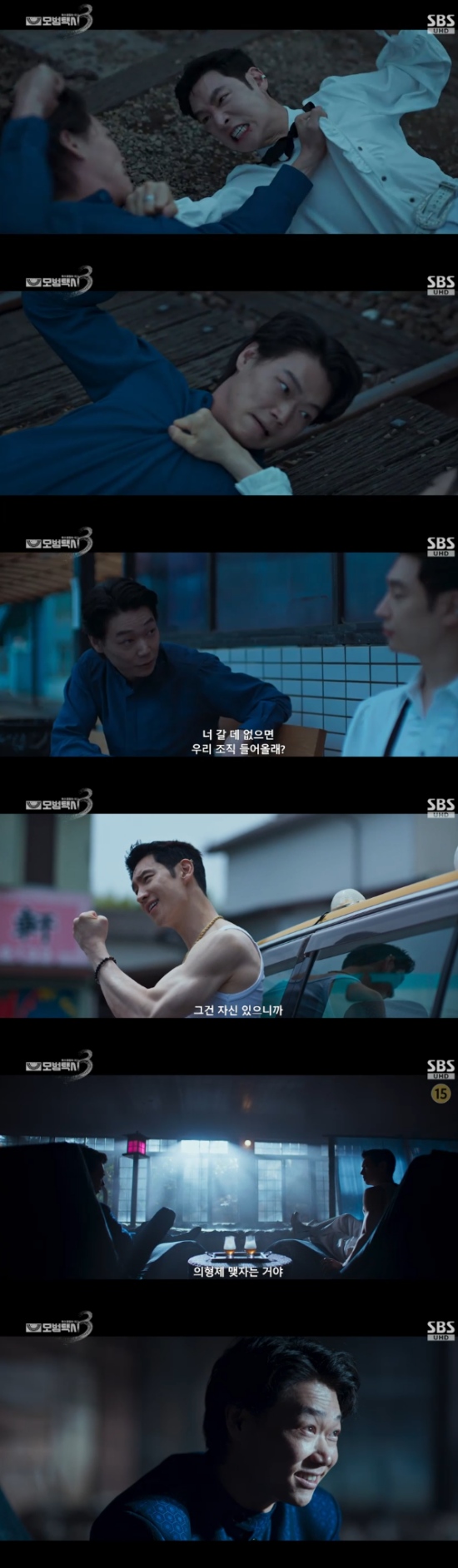 지난 22일 방송된 SBS 금토드라마 '모범택시3' 2회에서는 피해자를 위해 뭉친 김도기(이제훈 분), 장성철(김의성), 안고은(표예진), 최주임(장혁진), 박주임(배유람)의 모습이 그려졌다.