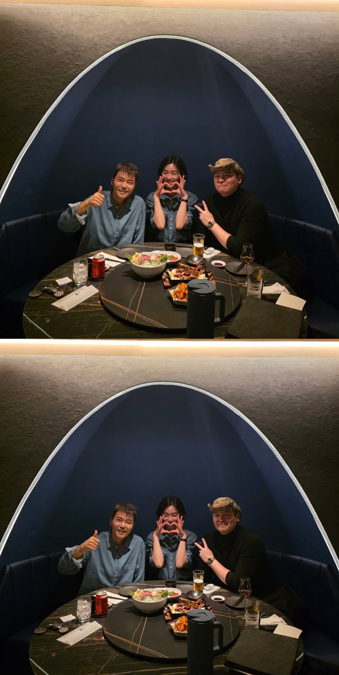 공개된 사진 속 전현무와 이장우, 조혜원은 나란히 테이블에 앉아 카메라를 향해 포즈를 취하고 있어 눈길을 끈다.
