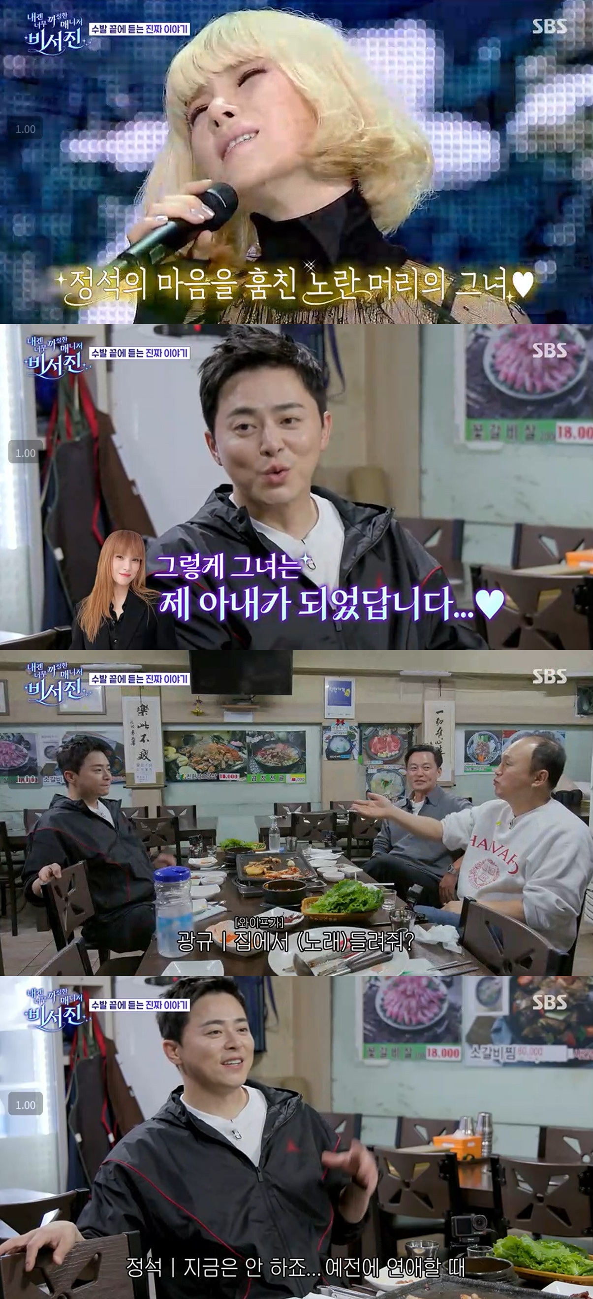 이날 조정석은 두 사람과 함께 식사를 하다가 '아내를 어떻게 만났냐'는 질문에 "사실 제가 거미 팬이었다. 그 당시 '눈꽃'이라는 노래를 좋아했다"고 운을 뗐다.