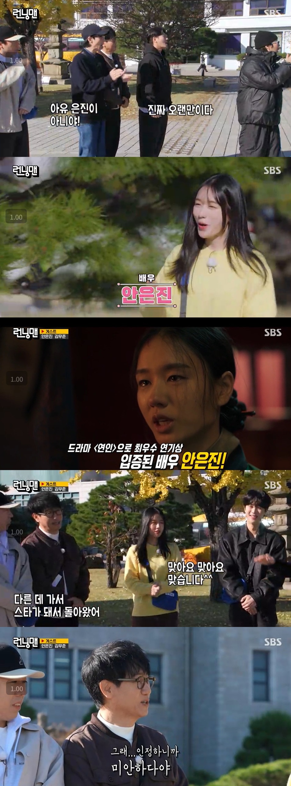 지석진은 "그 짤이 엄청 돌았다"며 안은진의 활약을 회상했고, 안은진은 "그러니까요. 오늘도 그걸 기대하면서 왔다"라고 고백했다.