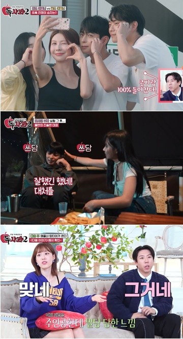 순식간에 벌어진 리얼 상황에 5MC는 “같이 자자는 말이냐?”며 충격을 금치 못했다. 이후 네 사람은 저녁 식사를 같이 하면서 더욱 가까워졌다. 주인공은 자신에게 팔짱을 끼거나 머리를 쓰다듬는 애플녀의 노골적인 ‘애플짓’도 큰 거부감 없이 받아줬다. 하지만 주인공은 결정적인 ‘독사과 공격’에는 발을 빼는 모습을 보였다. 특히 술 게임에서는 포옹과 뽀뽀 벌칙을 거부하는 등 ‘철벽 모드’를 가동했다.