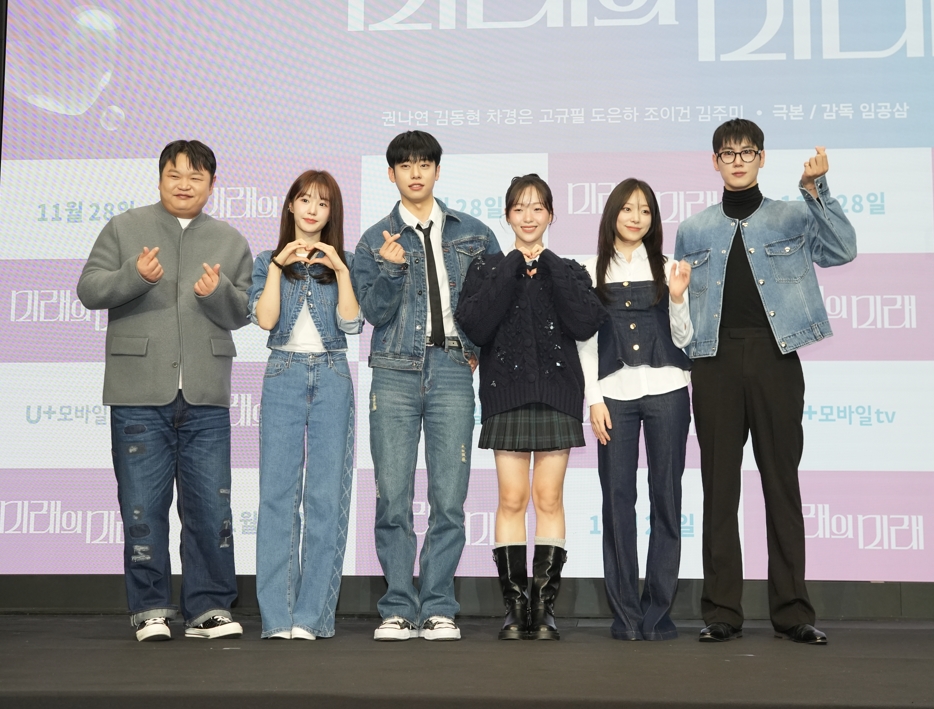 24일 서울 마포구 스텐포드호텔코리아에서는 U+ 모바일 tv 드라마 '미래의 미래' 제작발표회가 열렸다. 제작발표회에는 배우 권나연(우아), 김동현(에이비식스), 차경은, 고규필, 조이건, 김주미와 임공삼 감독이 참석했다.